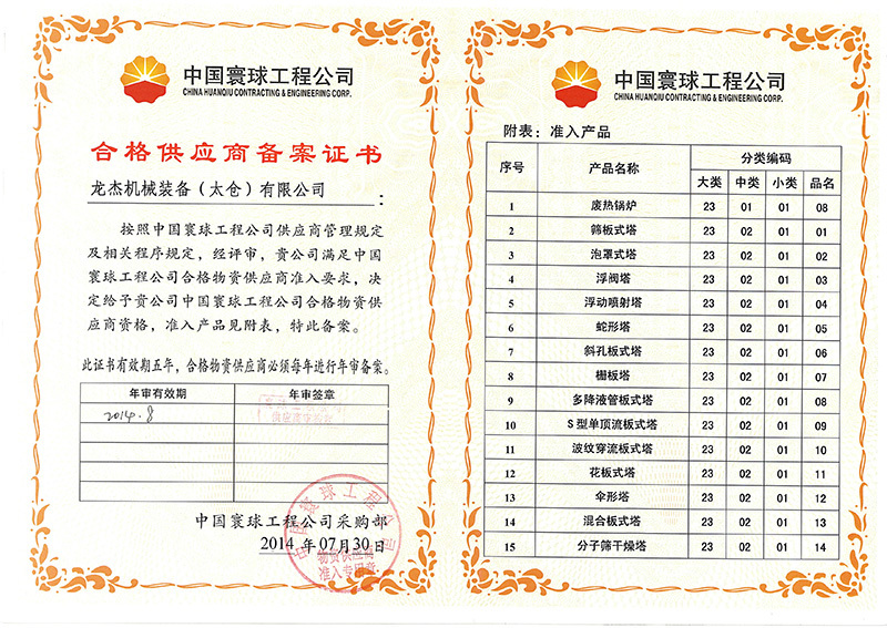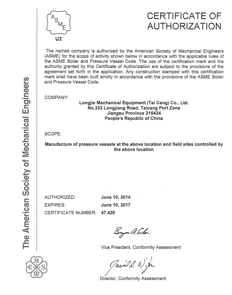 公司具有中國高、中低壓壓力容器生產(chǎn)許可證(A1級(jí), 包含設(shè)計(jì)、制造),ASME U、U2鋼印證書,PED G模式生產(chǎn)資格,是中石化、中石油、中海油、中化集團(tuán)、國家能源集團(tuán)等大型知名企業(yè)的合格供應(yīng)商。