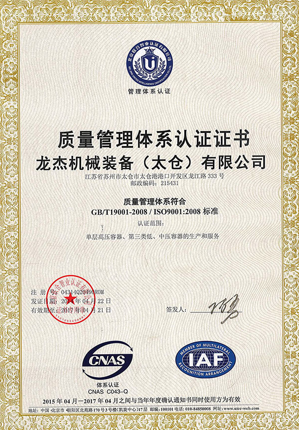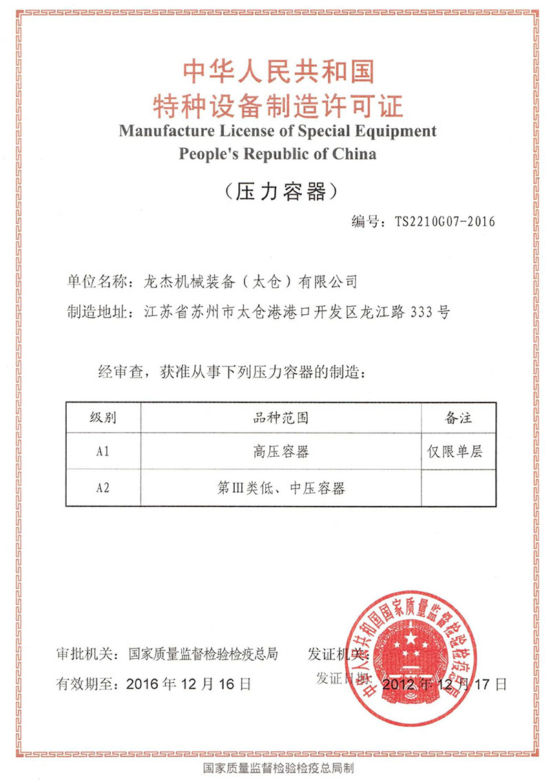 公司位于太倉港港口開發(fā)區(qū)內(nèi),近鄰太倉港,公路與水路交通運(yùn)輸非常便利。公司總占地面積108.39畝,廠房面積49600平方米,公司具有GB標(biāo)準(zhǔn)A1級(jí)生產(chǎn)資質(zhì)(包含設(shè)計(jì)、制造)。依托龍杰集團(tuán)多年積累的生產(chǎn)經(jīng)驗(yàn)和累積的人才、客戶、供應(yīng)商資源優(yōu)勢(shì),已形成年生產(chǎn)能力各類化工機(jī)械過程裝備15000臺(tái)(套)的規(guī)?;髽I(yè)。公司設(shè)計(jì)產(chǎn)能為3萬噸/年,年產(chǎn)值約8億元的生產(chǎn)能力。